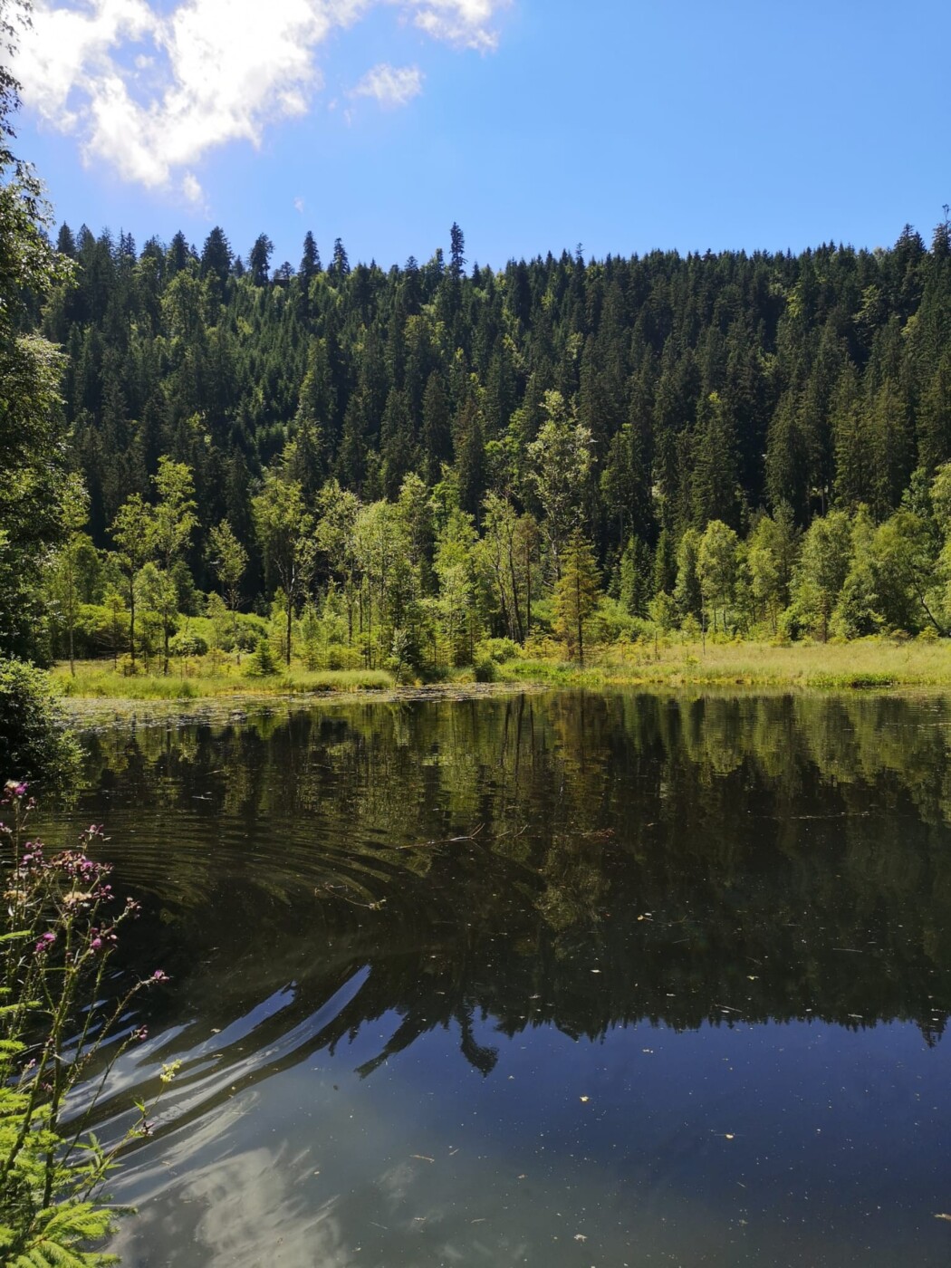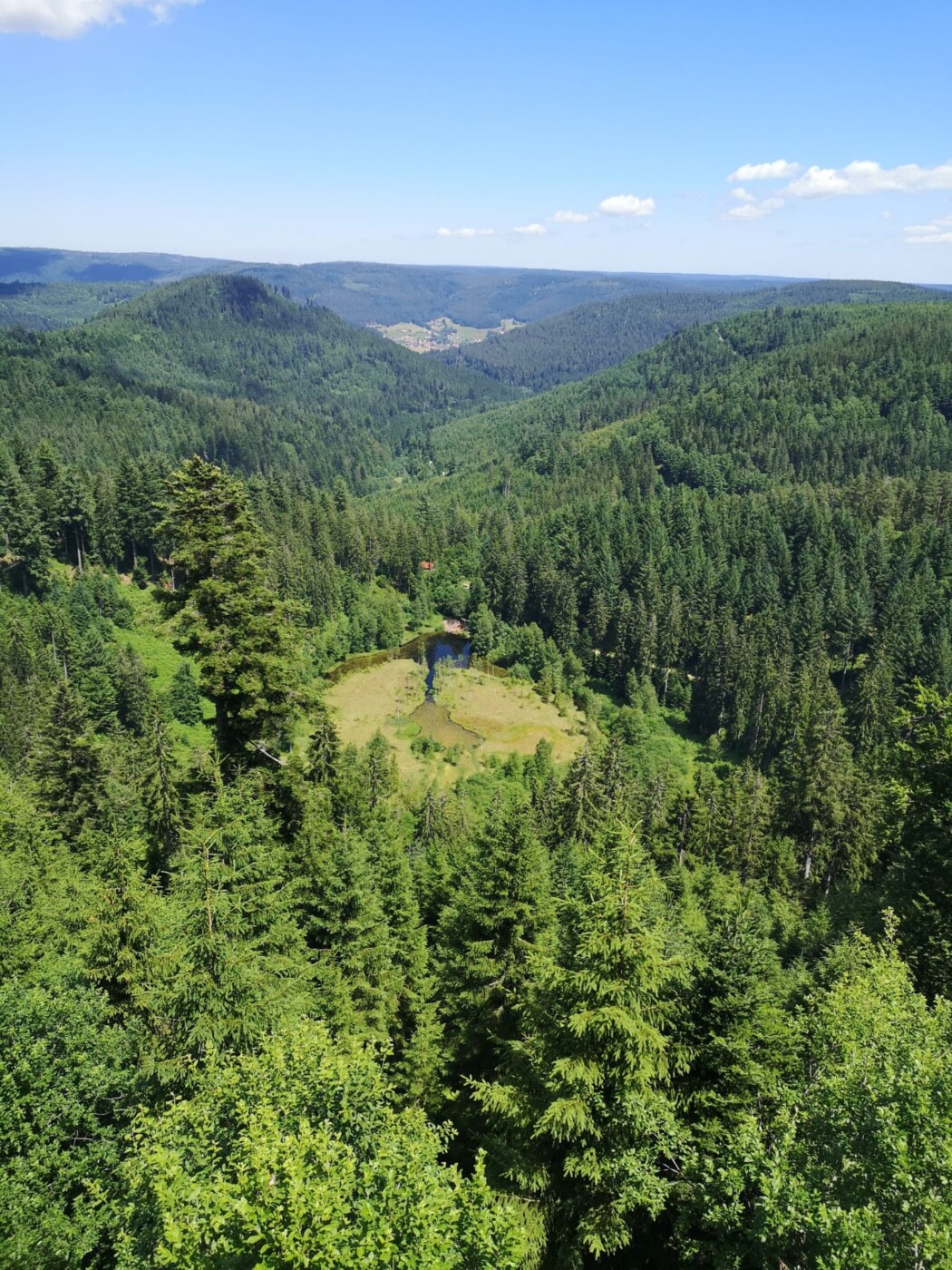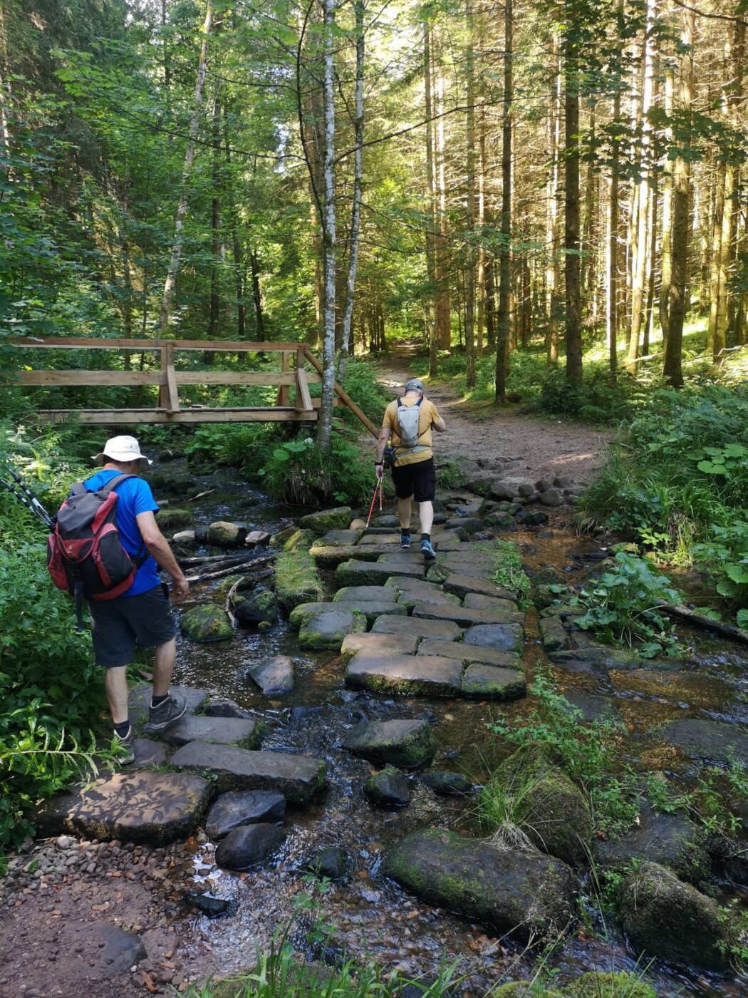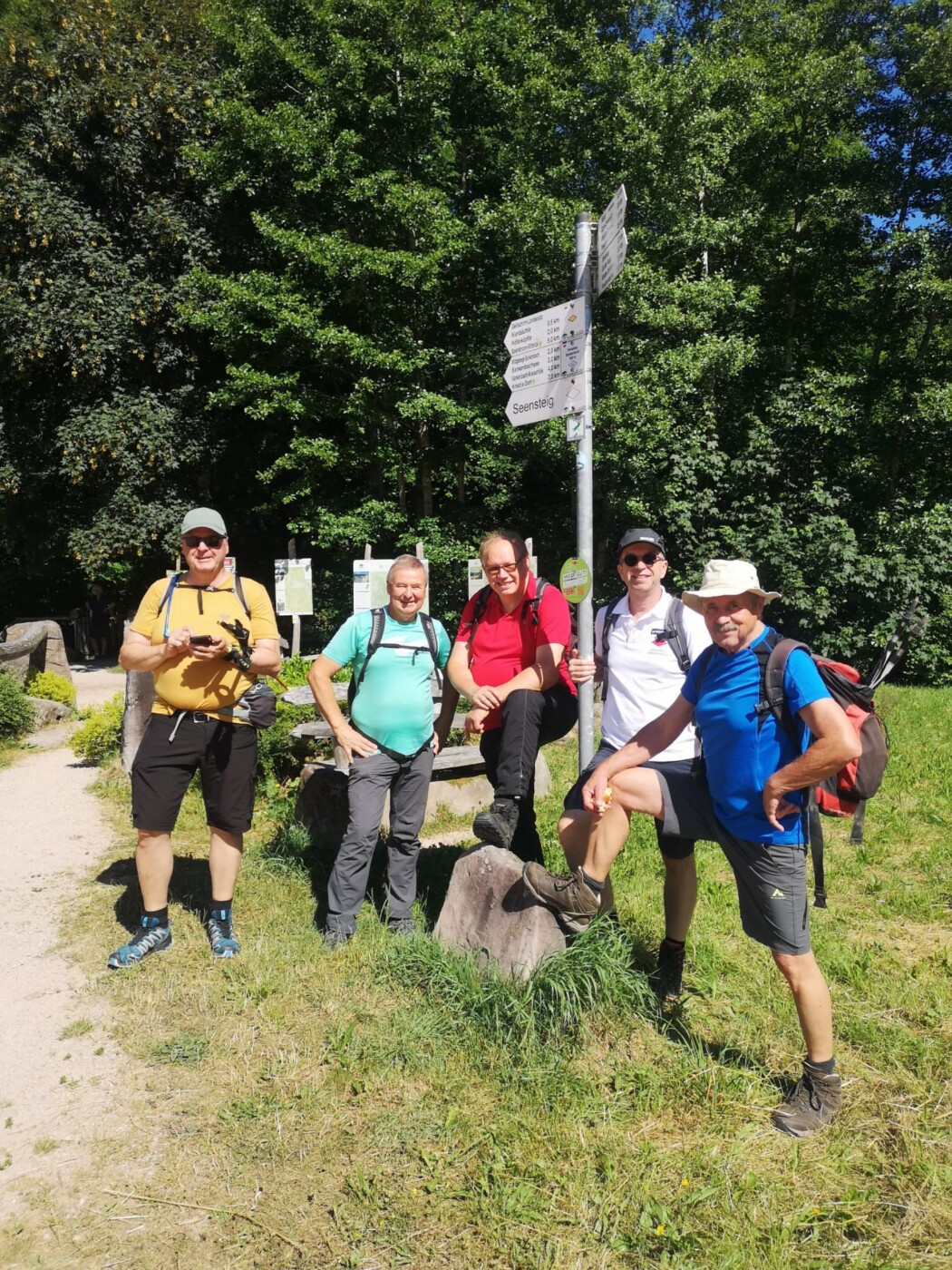 Fünf Mitglieder des Schwarzwaldvereins Birkenfeld Gräfenhausen haben sich am Sonntag, den 29. Juni 2025 zur 2-Seen-Tour in Baiersbronn eingefunden. Das sind zwar nicht viele – aber die Besten! Und genau die (und keine anderen) genossen die Tour in vollen Zügen. Zugegeben, es war sehr heiß, aber der rauschende Sankenbachwasserfall kühlte den mühevollen Aufstieg und auf fast 1000m ü. NN am Ellbachseeblick konnte man eine leichte Brise bei 25 Grad wundervoll genießen. Auf dem Abenteuertrail ging es entlang des „guten“ Ellbach immer in Richtung Mitteltal. Von dort aus ergaben sich wunderbare Ausblicke auf die Region Baiersbronn und die Sprungschanze, die jedoch wegen Schneemangels nicht getestet werden konnte! Ja, die Tour war eben nur für geübte Wanderer geeignet. Das gilt im Übrigen auch für die „Genießer-Tour“ im September. Man sollte sich vom Namen nicht verleiten lassen! Falls sich dort noch jemand anschließen möchte ist es höchste Zeit, mit einem intensiven Wandertraining zu beginnen.