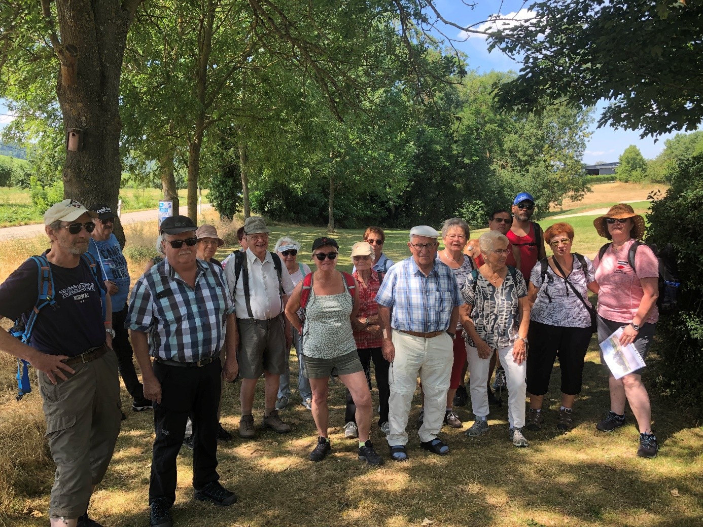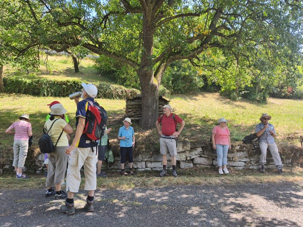 Nach anfänglicher Anmeldungszurückhaltung fanden sich dann am Sonntag, den 13.07.25, doch noch 37 Wanderer zur Müllerbusfahrt nach Cleebronn zum Golfplatz ein. Bei bestem Wetter bildeten wir die 2 Gruppen; neu war, dass es fast gleichgroße Gruppen waren (18/19). Diesmal startete die Kurzwandertruppe unter der Leitung von Martina Kirchherr (siehe Bild). Vorbei am Leiterwägele und Weingut Storz über die Straße Richtung Sattel des C+G Weinausschank Näser leicht ansteigend mit Pause, später über den Michaelsberg mit seiner von weither sichtbaren Kapelle oberhalb von Trippsdrill hinab in den schattigen Biergarten des Besens Leiterwägele (5km). Die Langwanderer (18) unter der Leitung von Stefan Bulling durchquerten erstmal den Golfplatz mit einem Smalltalk einer Golfertruppe am Loch 9. Vorbei am Loch 3 (Par 3), wo der Wanderführer früher mal ein Hole in One spielte, leicht bergab durch die Weinberge mit Aussicht ins Heilbronner Land und Anstieg mit Pause an der Aussichtskanzel Botenheimer Heide mit herrlichem Blick Richtung Norden. Zurück am Tennisplatz vorbei über Weingut Storz und Schloss Magenheim eine längere schattige Treppe hinab in den Weinort Cleebronn und leicht ansteigend westlich von Cleebronn durch den Wald in einem großen Bogen zum Sattel mit dem C+G Weinausschank Näser mit entsprechender Pause. An der neugebauten Weinausschankhütte Christophsblick vorbei hoch zum Michaelsberg mit kurzer Andacht in der Kapelle, der schönsten Weinsicht Württembergs, vorbei über Treppen und quer durch die Weinberge zurück zum Biergarten des Leiterwägeles (10km). Dort gemeinsames Verpflegen und Flüssigkeitszufuhr bis uns der Müllerbus gegen 18.45 Uhr sicher in Birkenfeld und Gräfenhausen absetzte.